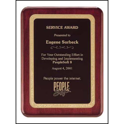 Rosewood stained piano finish plaque with gold florentine border and black textured center.